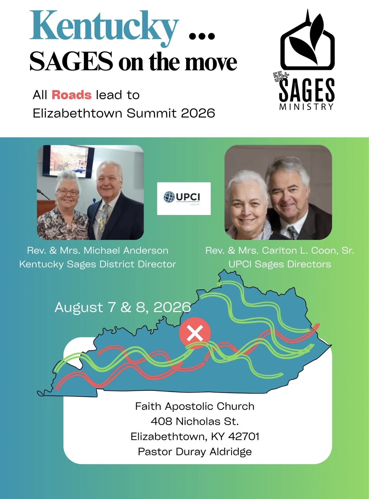Carlton L. Coon, Sr, UPCI National Sages Director will be the guest speaker. The summit will be located at: Faith Apostolic Church UPCI Pastor Duray Aldridge 408 Nicholas Street Elizabethtown, KY 42701